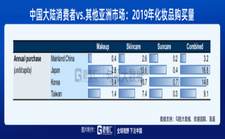 中國化妝品行業(yè)的空間和格局 中國化妝品行業(yè)未來的發(fā)展空間大,增長確定性強(qiáng)。 參考其他亞洲國家的情況可發(fā)現(xiàn),化妝品消費(fèi)水平和GDP之間存在較強(qiáng)的正相關(guān)關(guān)系。2019年中國化妝品支出/實(shí)際GDP為0.3%,而日韓的占比則為0.5~0.6%。 所謂市場發(fā)展?jié)摿Υ?,也就是天花板高,人均化妝品消費(fèi)水平的上升空間大。歐睿國際數(shù)據(jù)顯示,2019年我國消費(fèi)者人均購買3件化妝品。對比之下,日韓消費(fèi)者人均購買15~1