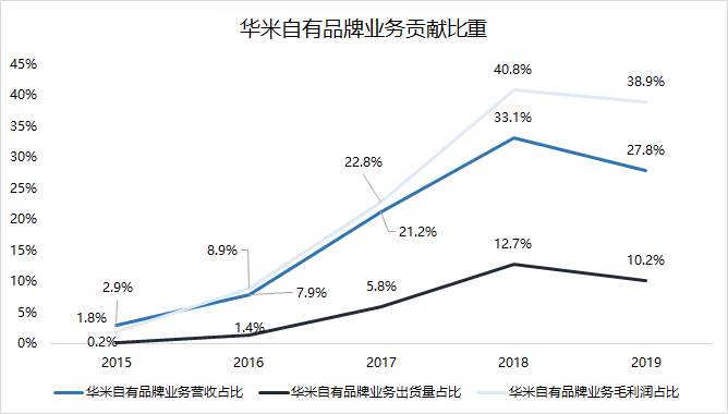 在頂峰的2018年,華米自有品牌以12.7%的出貨量占比貢獻(xiàn)了超過(guò)三成營(yíng)收與四成毛利潤(rùn)。
