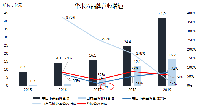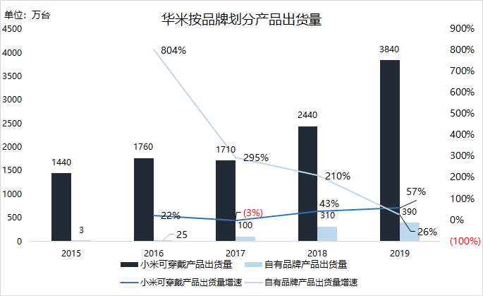 在招股書(shū)及年報(bào)中,華米會(huì)將營(yíng)收按品牌來(lái)源劃分為來(lái)自小米品牌與來(lái)自自有品牌業(yè)務(wù)兩部分。
