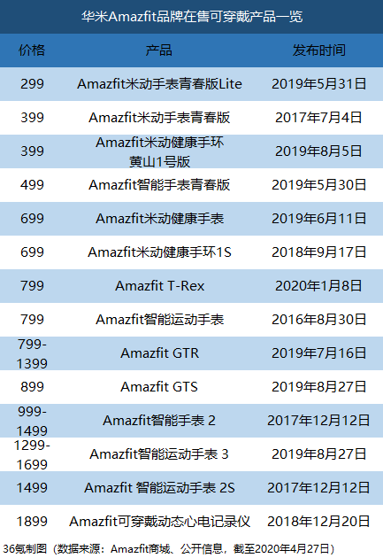 Amazfit 2019年新品發(fā)布數(shù)量多、頻率高,在保持品牌曝光度、快速覆蓋300元~2000元全部?jī)r(jià)格區(qū)間的同時(shí),也不可避免地存在相近價(jià)位產(chǎn)品區(qū)分不夠明顯、新老產(chǎn)品內(nèi)耗的問(wèn)題。